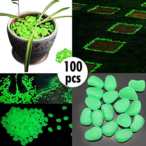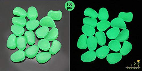 100 Fluoreszierende Grüne Steine | Leuchtsteine für die Innen- und Außendekoration | Zubehör für Aquarien, Gärten, Vasen, Pflanzen und Schwimmbäder | Bis zu 6 Stunden intensive Beleuchtung