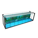 Dieses Aquarium hat ein Gesamtvolumen von ca. 38 L. Das Becken ist in 8 separate Kammern unterteilt. Der Bio-Filter befindet sich hinter der Rückwand und beinhaltet alle nötigen Filterelemente: Filterschwamm, Förderrohr (Luftschlauch + Ausströmer).