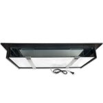 Info– Gesamtmaße: L 870 x H 580 x B 110 mm – Maße Wassertank: L 760 x H 410 x B 92 mm – Material: Aluminium-MDF / Glas