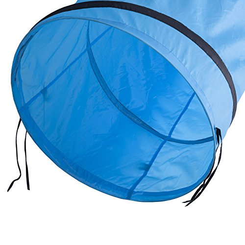 ✅ HOHER QUALITÄTSSTANDARD SORGT FÜR LANGLEBIGKEIT – Dank des extra dicken Nylons und der stabilen Metallringe ist der Agilitytunnel nicht nur sehr langlebig, sondern auch wasserfest und verzeiht Ihrem Hund so manches.