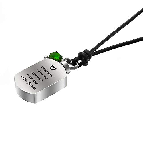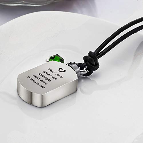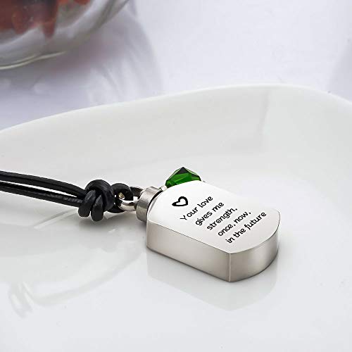 MJARTORIA Urnen Halskette grün Strass Asche Anhänger Kette Leder Seile Memorial Partnerkette Haustier Andenken Gravur Benutzerdefiniert