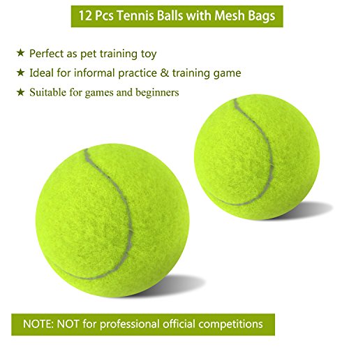 Dieses Paket kommt mit 12 Tennisbällen, so haben Sie immer einen Ersatz zu halten. Außerdem ist eine kostenlose Mesh-Tragetaschen für Sie bequem zu tragen. Ideal für Partys, Ausflüge mit großen Gruppen oder Unterricht zu einer Gruppe. Auch bouncy-Funktion mit lebendigen Farbe macht es attraktiv für Ihre Haustiere.