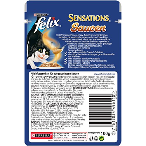 Felix Katzennassfutter Sensations Saucen (mit Lachs und Garnelengeschmack) 20er Pack (20 x 100g) Portionsbeutel