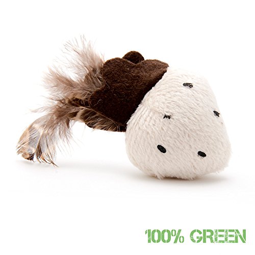 Die zwei supersüßen Spielkissen aus Plüsch greifen sich sehr soft an und imitieren eine Erdbeere. Die Punkte sind in den Plüsch gefärbt und können beim Spielen nicht runtergezupft werden. An der Oberseite sind zwei kleine Filzstücke eingenäht die Erdbeerblätter darstellen in denen wiederum echte Federn eingenäht sind. Die im Inneren verwendete echte Katzenminze weckt enorm das Interesse bei Spiel-Tigern und lässt sie stundenlang damit Spielen. Die ausgezeichnete Verarbeitung der Nähte bestätigt die außerordentliche Qualität dieses naturbelassenen Katzenspielzeugs. Die optimale Spielzeuggröße von 45x85c30mm ist für alle Katzengrößen in jedem Alter geeignet und hält durch seine robuste Verarbeitung auch für wilde Beißattacken problemlos Stand. Dieses tolle Katzenspielzeug wird im Doppelpack geliefert und findet somit in mehr als einem Raum platz. Positioniere ein Stück im Wohnzimmer und das zweite in deiner Küche oder verstecke einfach ein Stück in einer Schublade und gib es deiner Katze wenn das erste aufgebraucht ist. Alle verwendeten Materialien sind ohne Giftstoffe und komplett ungiftig. Sollte deine Katze oder dein Kater ein Stück abreißen und diese verschlucken stellt es kein Risiko dar. Allerdings solltest du das Spielzeug regelmäßig kontrollieren und bei heftiger Beschädigung in den Mülleimer werfen.