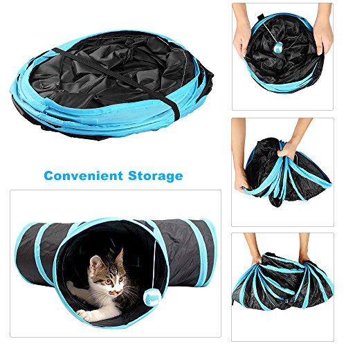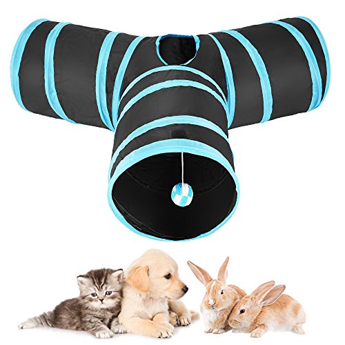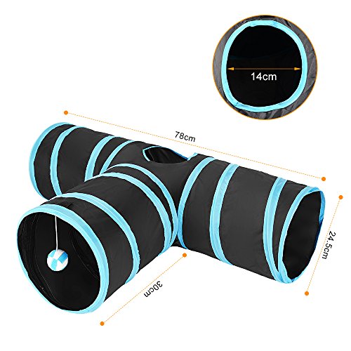 ASIV Katzenspielzeug, 3-Wege Katzentunnel Faltbare Spieltunnel mit Wackelig Ball für Katze, Puppy, Kitten und Kaninchen