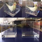 thelastplanet Haustier Vogel Bad Vogelbadekäfig Vogelbadehaus Eingesperrtes Vogelbad Papagei Fink Kanarienvogel Wellensittich Aufhängehaken Transparent 13X13X11cm/17X17X17cm