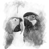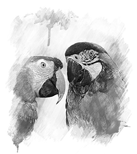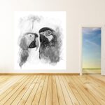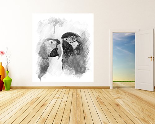 Bilderdepot24 Vlies Fototapete – Wasserfarbenbild – Papageien – schwarz Weiss – 240×270 cm – mit Kleister – Poster – Foto auf Tapete – Wandbild – Wandtapete – Vliestapete