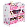 Blumen und Vögel – Regal zur Spielzeugaufbewahrung mit sechs Kisten für Kinder