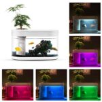 Yshen Aquarium Mini Kunststoff tragbare Desktop Schüssel mit Wasserfiltration leise Luftpumpe für Deko 1 Satz weiß mit LED-Lampe
