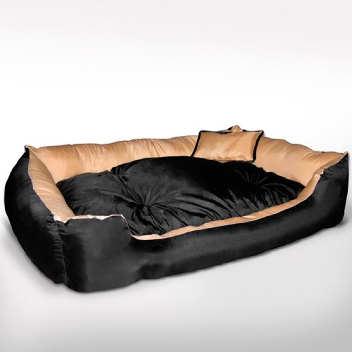 XXL Hundebett in schwarz-beige 120x90x30cm inkl. Hundekissen und Hundedecke