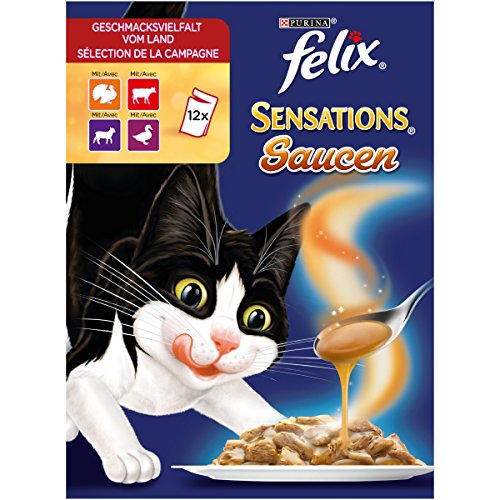 Felix Katzennassfutter Sensations Saucen Geschmacksvielfalt vom Land, 6er Pack (6 x 12 x 100g) Portionsbeutel