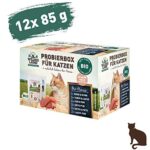 Die Nassfuttervariationen von Wildes Land sind schmackhafte und nährstoffreiche Mahlzeiten aus puren, naturbelassenen Zutaten. Gefertigt wird ausschließlich in Deutschland unter höchsten Standards. Die Konservierung erfolgt ganz natürlich in der eigenen Kochbrühe. Das Katzenfutter enthält keine Zusatzstoffe, ist frei von künstlichen Konservierungsmitteln, Lock- und Farbstoffen und wird natürlich ohne Tierversuche hergestellt.