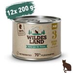 Wildes Land | Nassfutter für Katzen | Nr. 3 Huhn PUR | 12 x 200 g | Getreidefrei | Extra viel Fleisch | Beste Akzeptanz und Verträglichkeit