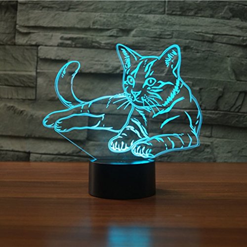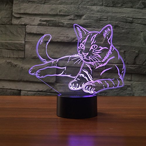 3D Schreibtischlampe Kätzchen Nacht Nachtlicht, Touch Schalter 7 Farbe 3D Optische Tischlampe Wohnzimmer Schlafzimmer 3D Dekorative Lichter. Acryl Flat Und ABS Base Und USB Kabel Katze Spielzeug