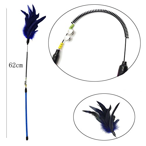 MATERIAL- Metall. Plastik, Plüschfeder.FUN ADDICTIVE ENTICING FÜR KATZEN: Der wilde Wunder Zauberstab mit schönen Federn und glänzenden Wunderkerzen halten sie fasziniert. Nylon-Flexschnur und aerodynamisch gestaltete Federn mit Glocke, die die Wirkung eines REAL-Vogels im Flug nachahmen.