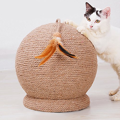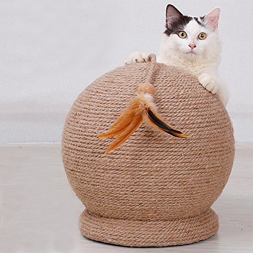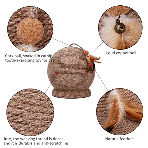 AIHOME Sisal Kratzbrett 360 ° Sphärische Katzen Kratzspielzeug mit Glocke und Feder Spielzeug