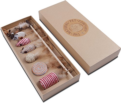 Katzenspielzeug Set – Interaktiv – Federn – Katzenangel – Stoffmäuse – Geschenkbox – The Natural Pet Company Qualitätsprodukt