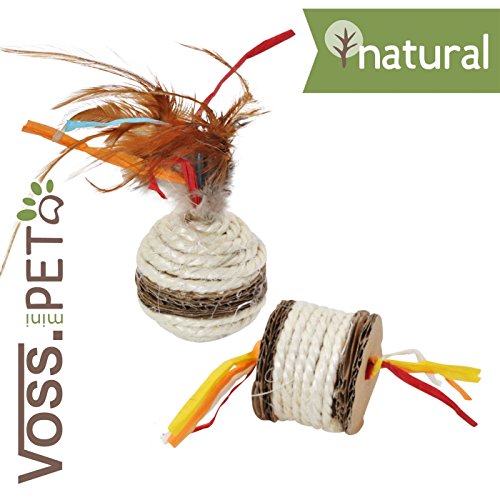 Die in diesem Set enthaltenen Spielzeuge aus Holz, Sisal, Seegras, Federn und Stoff bieten Ihrem Stubentiger stundenlang Beschäftigung.
