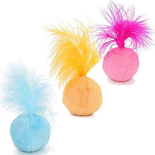 OFKPO 3 Stücke Katzenminze Ball Spielzeug,Rassel Spiel Bälle mit Feder für Haustier Katzen