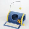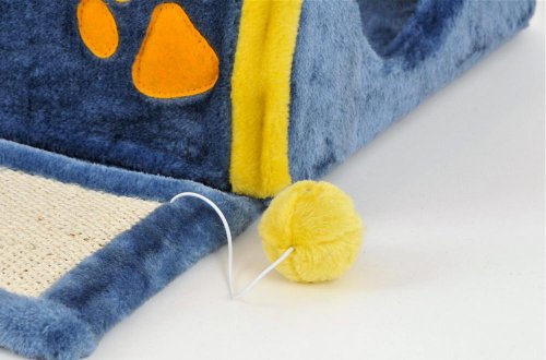Klein aber oho! Das gilt auch für diesen Katzen-Spieltunnel, der wenig Platz benötigt aber viel bietet. Die Reizangel auf dem Dach sorgt für Freudensprünge. Die Kratzfläche vor der Höhle steht zur Krallenpflege bereit und die daran befestigte Spielkugel wird bestimmt gerne als Beute mit in die Höhle genommen. Nach diesem aufregendem Spiel wird ein Schläfchen in der kuscheligen Höhle, die liebevoll mit farblich abgesetzten Rändern und einem Pfotenabdruck auf der Vorderseite versehen ist, nötig sein.