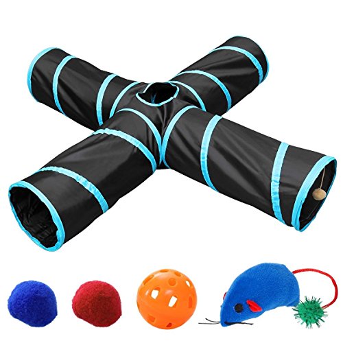 Perfekte Spielzeug für Haustiere: Die 4-Wege Tunnel bietet Ihren Katzen mehr Möglichkeiten zu spielen als eine einfache, gerade Tunnel, mehr interaktiven Spaß als Katze Zelte, Würfel, kratzplätze, Federn, und Maus Spielzeug.