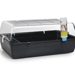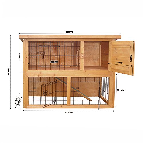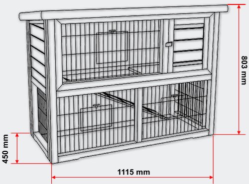 Dieser praktische Kleintierstall mit 2 Etagen für kleine Rassen, wie zum Beispiel Hasen, Meerschweinchen, Hamster besitzt ein abgetrenntes Schlafhaus und ein gut abgedichtetes Holzdach mit Bitumenisolierung.