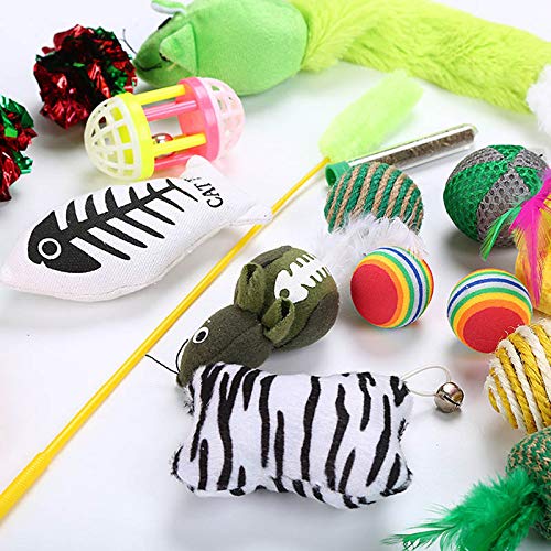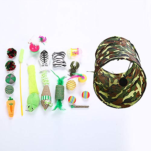 Info20 Stück Katzenspielzeug, inkl. Katzentunnel, Katzenstab, Minzfisch, Feder, Maus, Tumbler usw.
