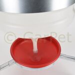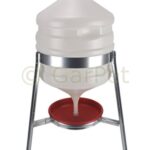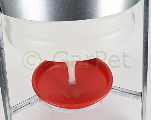 Siphontränke für Geflügel und weiteren Kleintieren aller Art an mit 30 Litern Inhalt und hochgelegener Trinkschale. Dies verhindert die Verschmutzung des Wassers durch das Scharren des Geflügels. Drei Füße geben der Tränke einen sicheren Stand. – Fassungsvermögen: ca. 30 Liter– von oben befüllbar