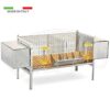 Hasenstall zerlegbar zwei verzinkte Häuschen. Komplett mit Tränken Flaschenhalter aus Kunststoff und Futterspender für Streufutter und Heu. Technische Merkmale Breite mit Nestern 149 cm Tiefe 66 cm Höhe 66 cm Breite ohne Häuschen 100 cm Bratpfanne Abmessungen 94 x 52 cm Größe einzelne NIDO 48 x 24 x H25 cm Größe Trennwand aus Kunststoff bedruckt 25 x 50 cm – 4 Stück Gewicht 13,70 kg