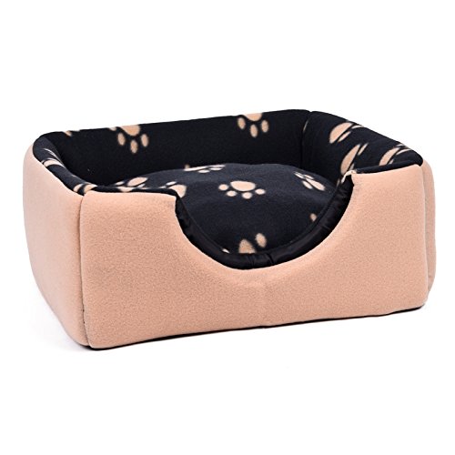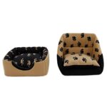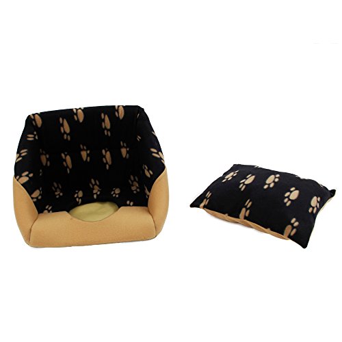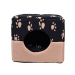 zhou-Haustier, Super Warm Katze Haustier Bett Hund Cube Bett Haustier Nest Für Kleintiere Katzen Kaninchen Kleine Hunde mit Thicken Kissen (Color : Beige paw, Size : S)
