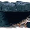 Es leitet die Wärme sowohl nach oben als auch in die Höhle. Die Tiere haben so ein warmes Versteck und können sich auf der Höhle ’sonnen‘. Und wenn sie mal der Höhle entwachsen sind, kann man das Oberteil immer noch abnehmen und als Heizstein verwenden.