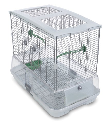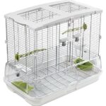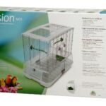 – Von außen zugängliche Futter- und Wassernäpfe und Vogelsitzstangen