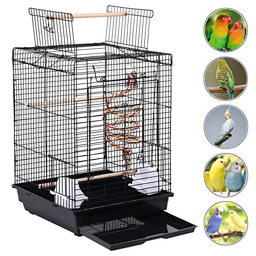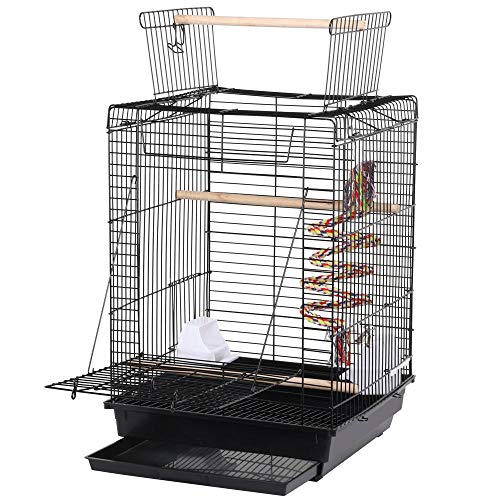 Yaheetech Vogelkäfig mit Vogelspielzeuge Wellensittichkäfig Nymphensittiche Fink Papageienkäfig mit Dach 40 x 40 x 58 cm