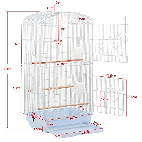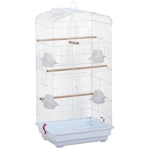 Yaheetech Vogelkäfig Vogelvoliere Tierkäfig Vogelhaus für Papagei Wellensittich, 46 x 36 x 92cm(Weiß)