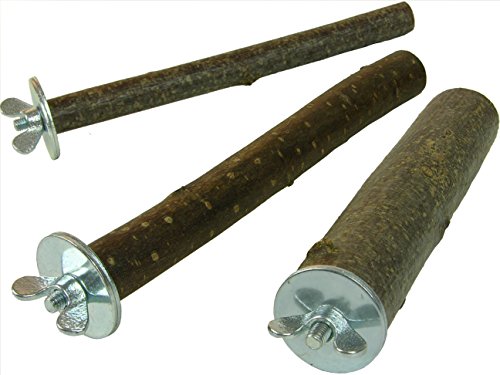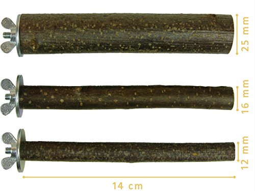 3 Sitzstangen für Vögel aus Naturholz 14 cm lang | Für Wellensittiche, Finken, Nymphensittiche, Papageien und Co. | Sitzstangen Set für Vögel | Ohne Werkzeug an jedem Käfig einfach zu befestigen